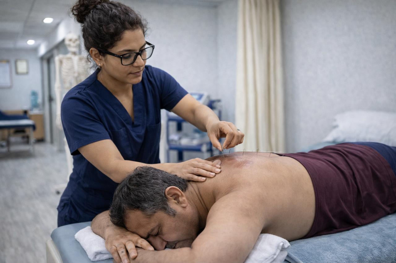 Dry needling is a specialised technique used to release myofascial trigger points and reduce muscle pain. Fine needles are inserted into tight muscle bands to relieve tension, improve blood flow, and restore normal muscle function.