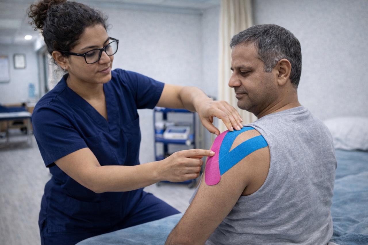 Kinesio taping is a therapeutic technique used to support muscles and joints, reduce pain, and improve movement without restricting mobility. It helps enhance blood and lymphatic circulation, decreases muscle fatigue, and provides stability to injured or overused areas.