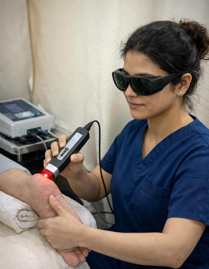Laser therapy is an advanced, non-invasive treatment used to reduce pain, inflammation, and accelerate tissue healing. It helps improve blood circulation, promotes cellular repair, and is highly effective for musculoskeletal pain, sports injuries, nerve-related conditions, and post-surgical recovery.